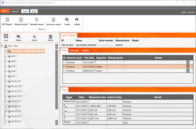 Protokoły z pomiarów elektronarzędzi sporządzane są w programie Sonel PAT Analiza
