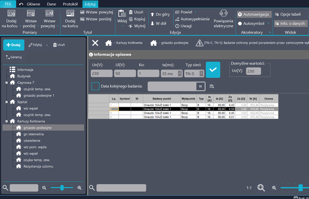 Protokoły z pomiarów sporządzane są w programie Sonel PE6