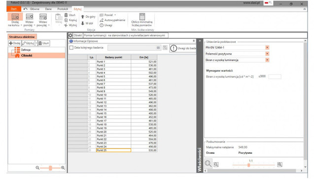 Protokoły z pomiarów oświetlenia sporządzane są w programie Foton 3